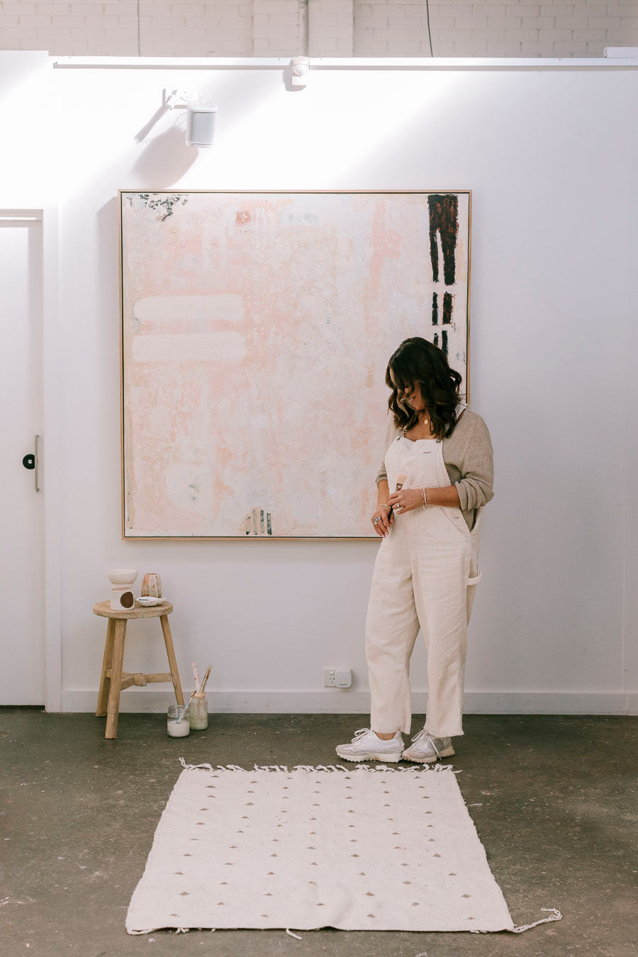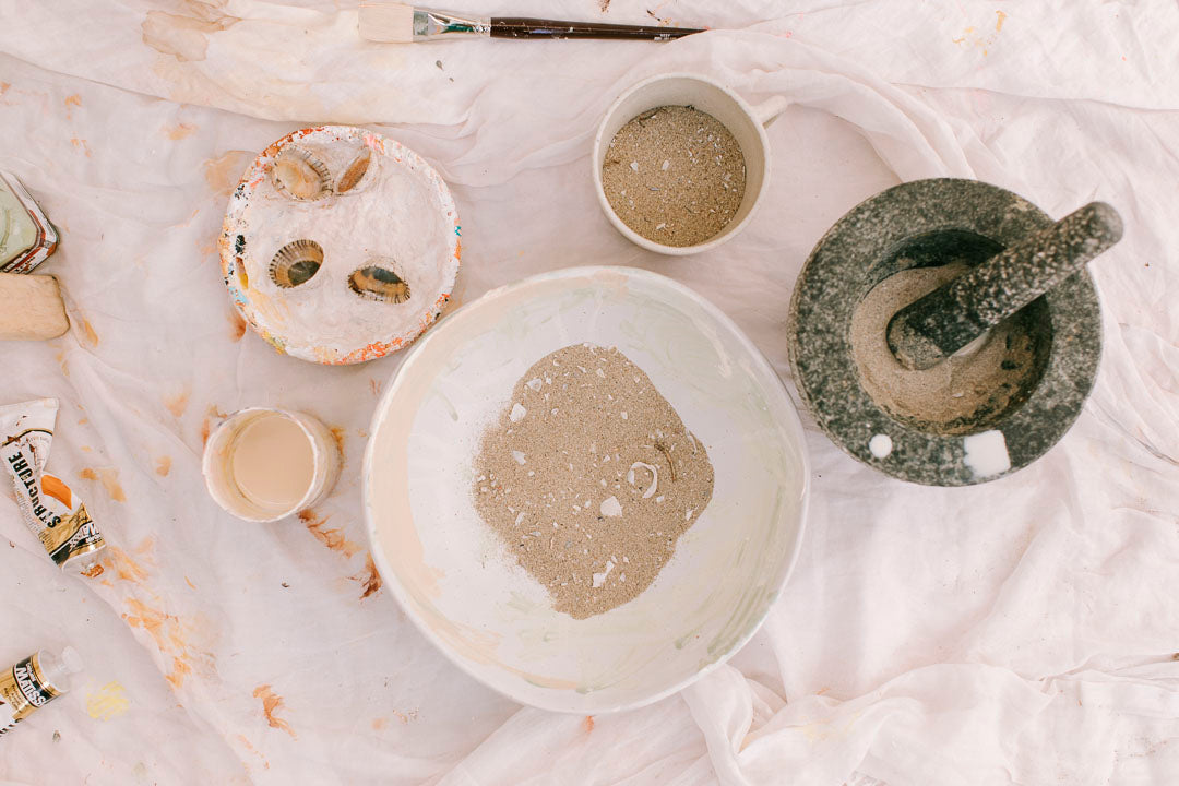 Amid Coastal Contemplation, Jackie turns to her Sorrento backyard and finds a natural muse in Mother Nature. Whispers of the sea, tides of tranquillity and the stillness of sands are laid bare in works imagined to bring a state of effortless, joyous calm. This is serenity rendered in a symphony of organic coastal treasures found and blended in a mortar and pestle, then applied with natural tones, providing visual textures akin to those discovered wandering the ephemeral shores of the meandering coastline.